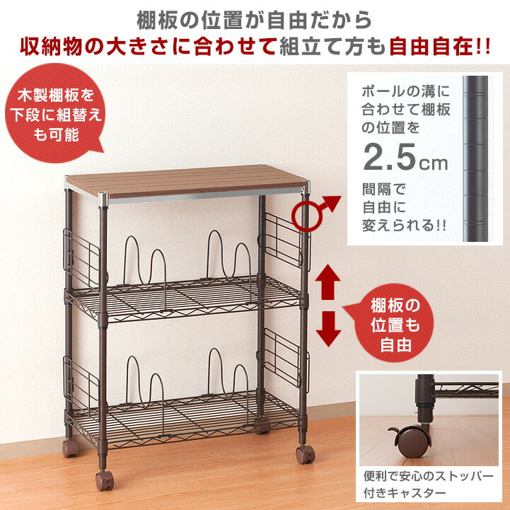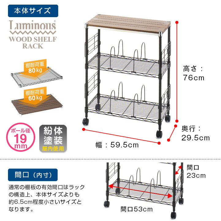 【エントリーでP5倍】スチールラック 幅60 3段 木板 木棚 木製ラック ウッドラック オープン シェルフ オープンラック おしゃれ 木棚付き 北欧 スチールシェルフ スチール棚 アイアンラック スチール メタル ラック ルミナス ウッドシェルフ ラック ブラウン WS6090-3BR