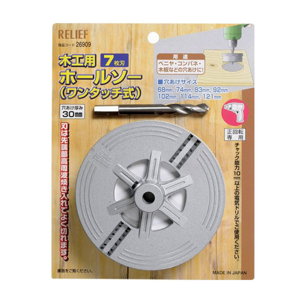 木工用ホールソー(ワンタッチ式)121mm 【あす楽対応hl】【HLS_DU ] 直径68 74 83 92 102 114 121mm 深さ30mmの7枚刃セット 木工用 [ ホールソー ホルソー クラフト 工具 道具 作業工具 diy 大工道具 穴あけ作業 ]