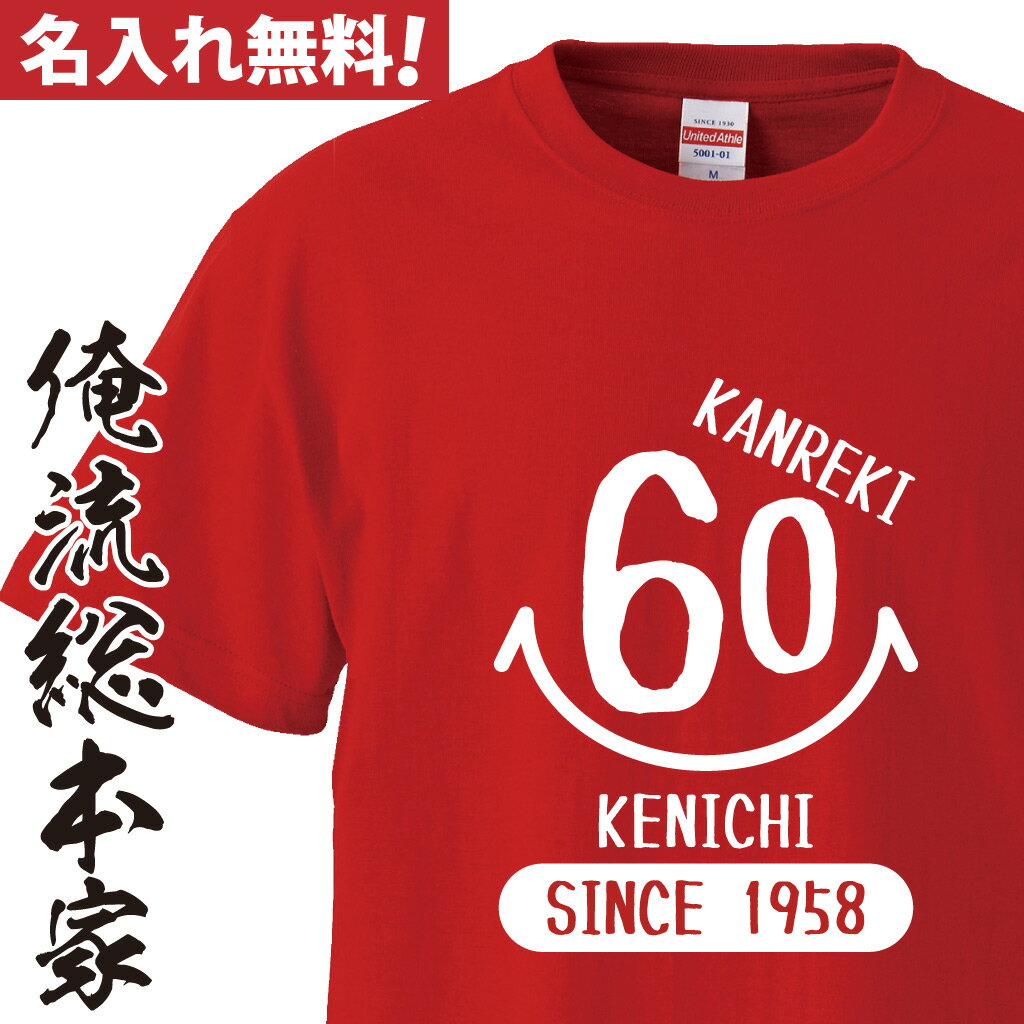 オリジナル 名入れ tシャツ【名入れ-還暦Tシャツスマイル】還暦 コスプレ 衣装 子供 大人 コスプレ 仮装 おもしろ 大きいサイズ プレゼント 名前ないれ 名前入れ Tシャツ tシャツ オリジナルプリント 大きいサイズ
